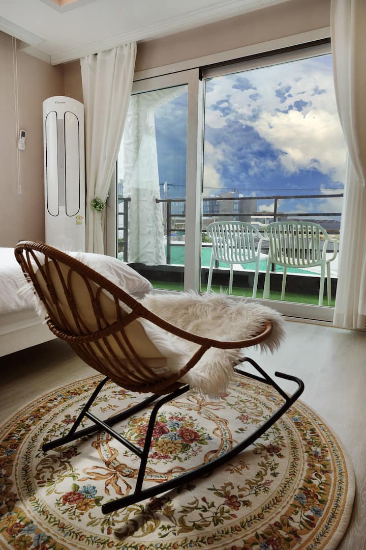 - Сместувања за одмор за изнајмување со пристап до плажа во Чеџу