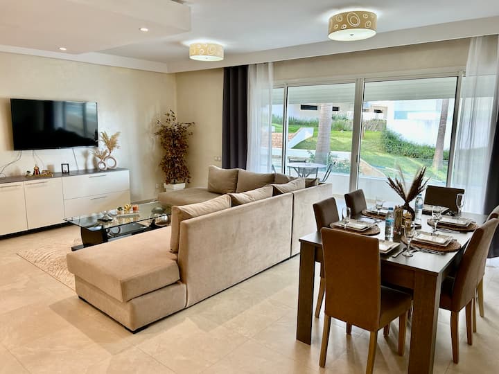 Лофт со 2 спални соби и отворен простор – базен и градини