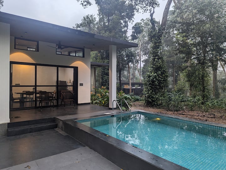 Сместен на благите падини на Кодагу, во близина на Мајсур, Birdsong излегува од бујна таписерија од растенија за кафе и високи сребрени дабови. Оваа вила со две спални соби нуди мирно бегство, со поглед на плантажата која се протега надвор од нејзините проѕирни ѕидови.