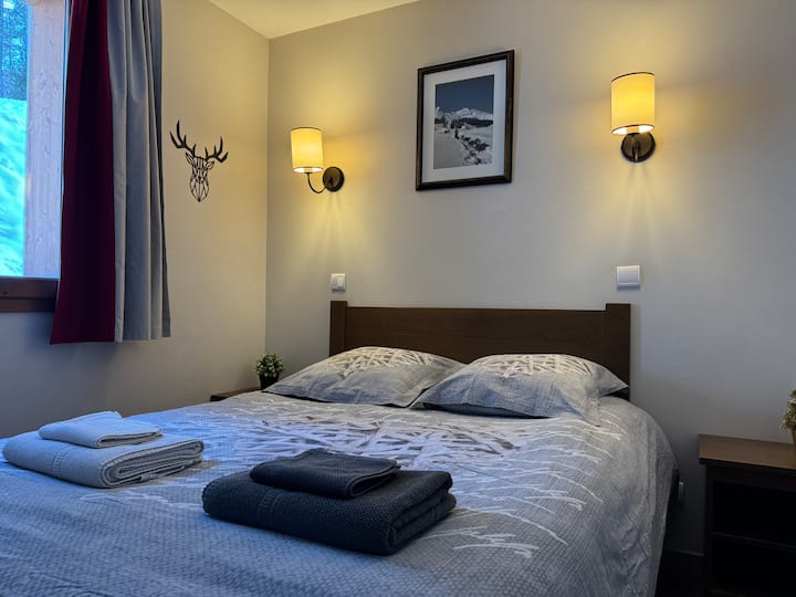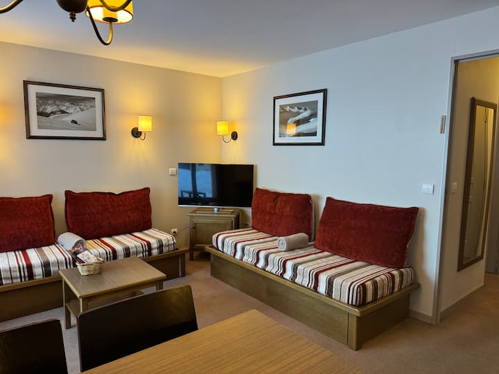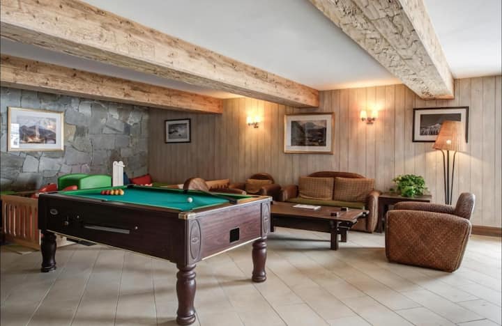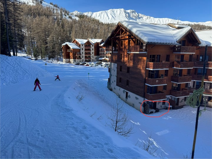 LES CLAUX во подножјето на падините, базенот и паркингот