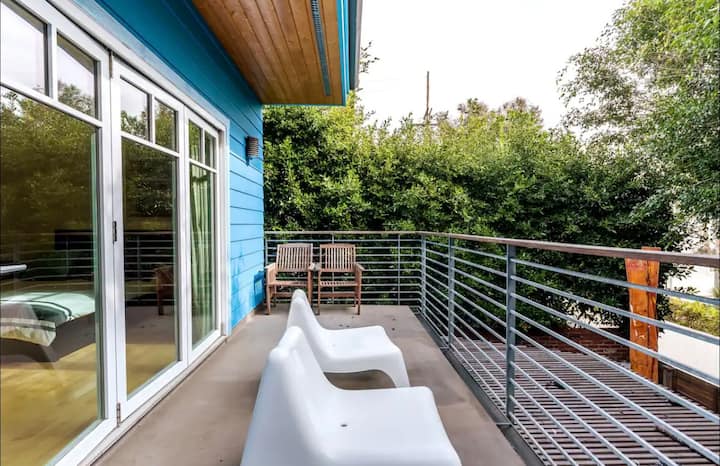 - Сместувања за изнајмување со простор за седење на отворено за одмор во Venice Canals