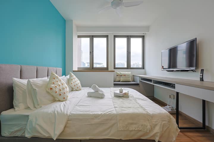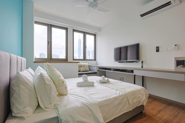 2Pax минимално студио во син стил @ Merdeka 118 view