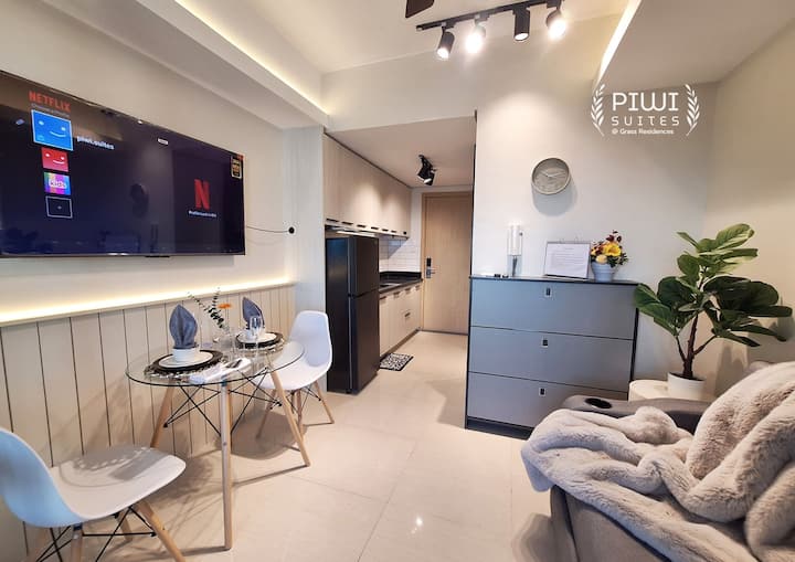 Добре дојдовте во АПАРТМАНИТЕ PIWI, нашиот ново дизајниран и реновиран кондоминиум со една спална соба во GRASS Residences- FERN (Tower 4- 29th Floor), лоциран во срцето на Кезон Сити. Овој модерен и стилски простор со сосема нов мебел нуди совршен спој на удобност, практичност и пристапност преку покриен мост до еден од најголемите трговски центри во Азија (SM North EDSA). Приватен балкон кој ви дава неверојатен поглед кон градот. Идеално место за одмор како за деловни, така и за рекреативни патници.