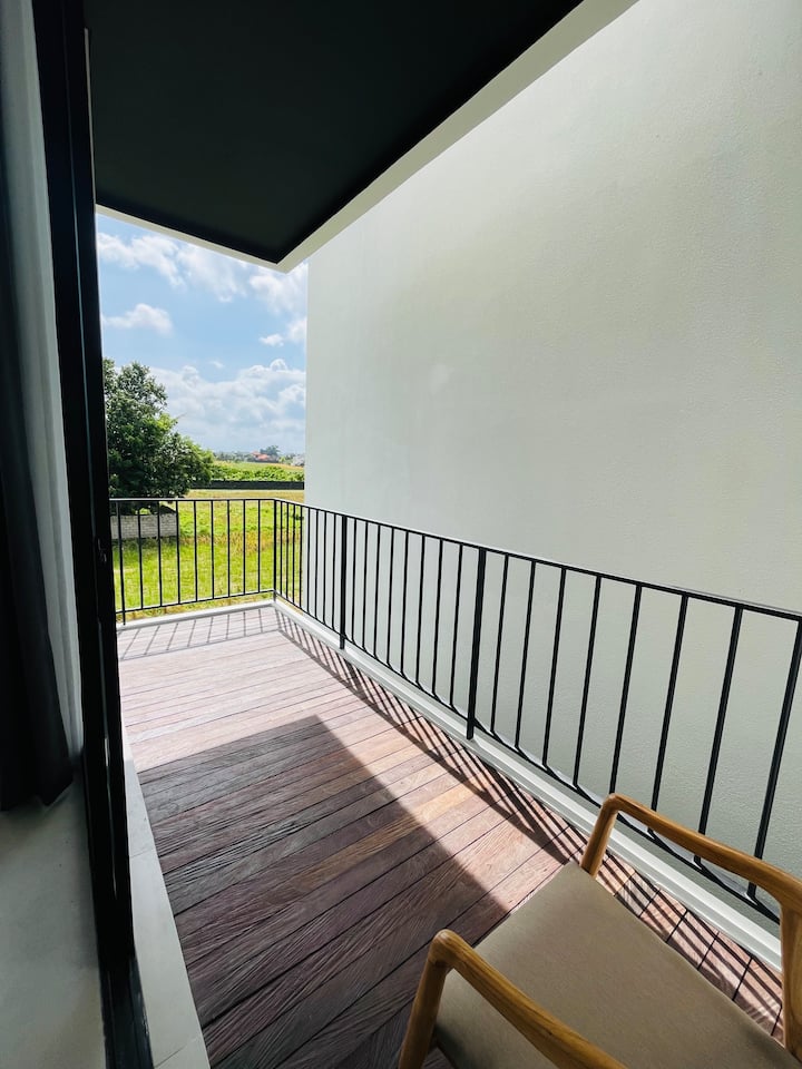 Модерна вила со поглед кон Рајсфилд во Кедунгу