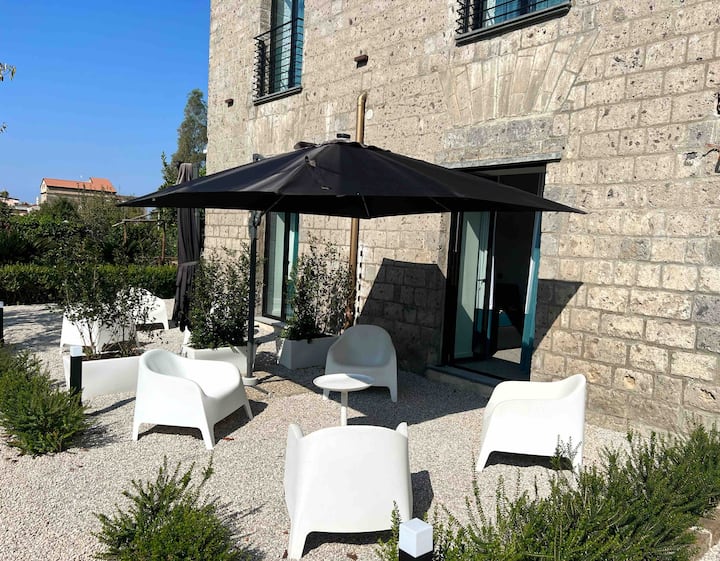 мал стан, приватен надворешен простор, базен и градина