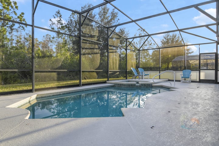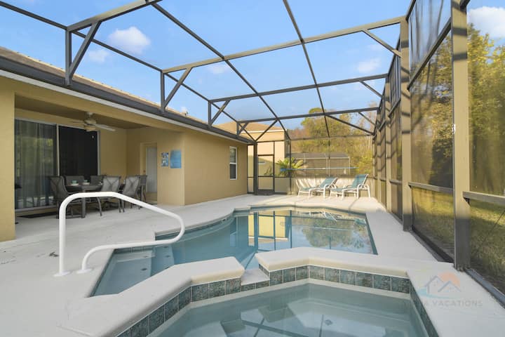Овој луксузен еднокатен дом има сѐ! Внатрешна игротека (со клима уред), модерен и вкусен дизајн и приватен базен и спа центар со покриено ланаи! Најдобро од сѐ, овој дом е оддалечен само околу 10 минути од тематските паркови!