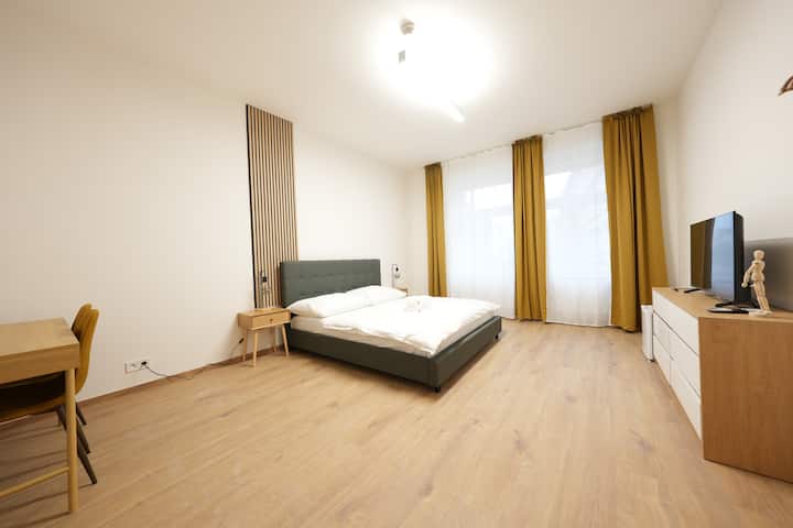 Добре дојдовте во резиденцијата на кат во срцето на Прага, се наоѓаме на 10 минути пешачење од плоштадот Венцеслас и Националниот музеј. На 5 минути пешачење има и метро и трамвајска станица.