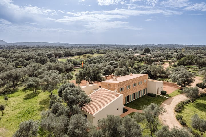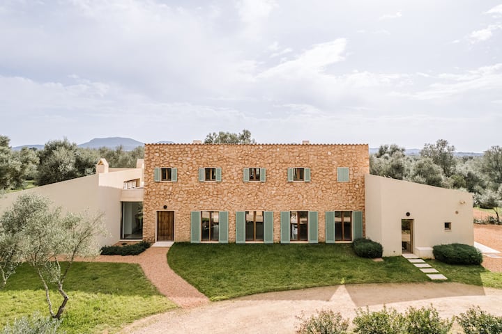 Откријте го овој прекрасен имот кој се наоѓа во привилегирана област помеѓу Алгаида и Сенселес, каде што минималистичкиот дизајн се среќава со традиционалната мајорканска архитектура во совршена хармонија. Со 26 000 м² земјиште, овој имот нуди приватен амбиент опкружен со природа, идеален за уживање во мир и простор. Куќата, со дневна површина од 400 м², е распределена на два ката и има големи прозорци кои ги исполнуваат просторите со природна светлина, истакнувајќи ги изложените дрвени греди кои додаваат топлина и карактер.