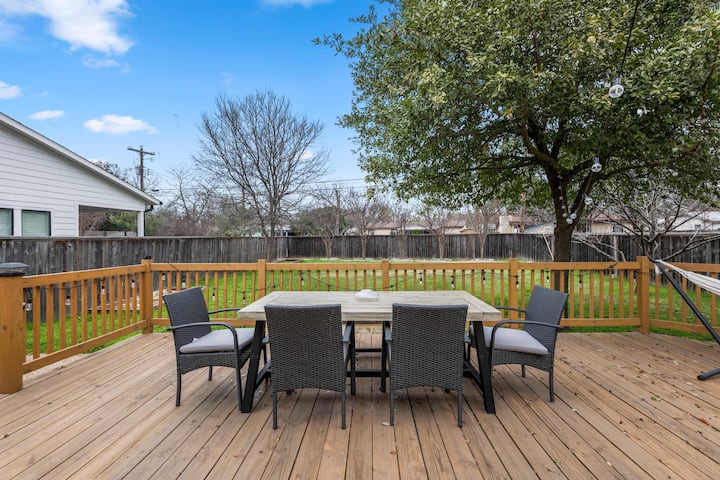 - Сместувања за изнајмување со простор за седење на отворено за одмор во Остин