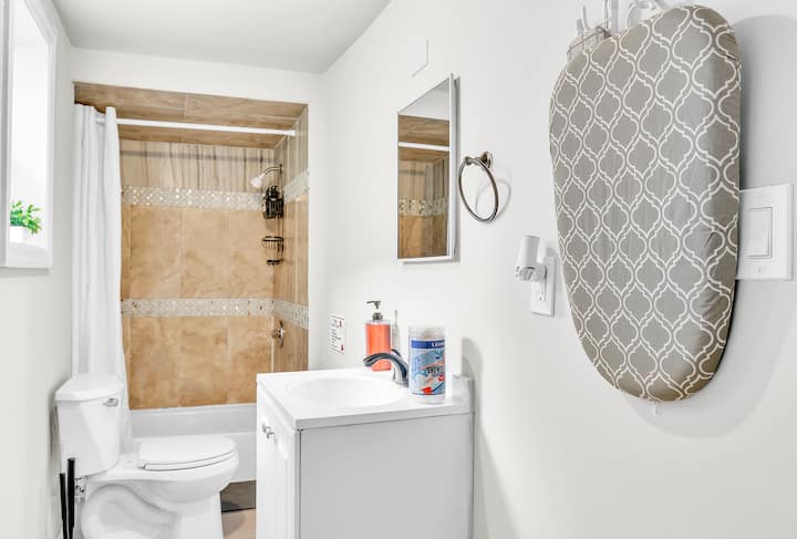 Сместена на само 7 милји оддалеченост од аеродромот EWR, оваа заедничка соба е добро позиционирана со транспортни врски пред вашиот праг – совршена за откривање на скриените убавини на центарот на Њуарк. За само 15 минути, ќе пристигнете на станицата Њуарк, Њу Џерси, овозможувајќи ви брз пристап до метежот на Њујорк за само две брзи станици. Потоа, повлечете се во нашето неодамна реновирано живеалиште од 1800 квадратни стапки, опремено со сосема нов мебел, брз Wi-Fi и бесплатен појадок секое утро! Паркирањето е ТЕШКО