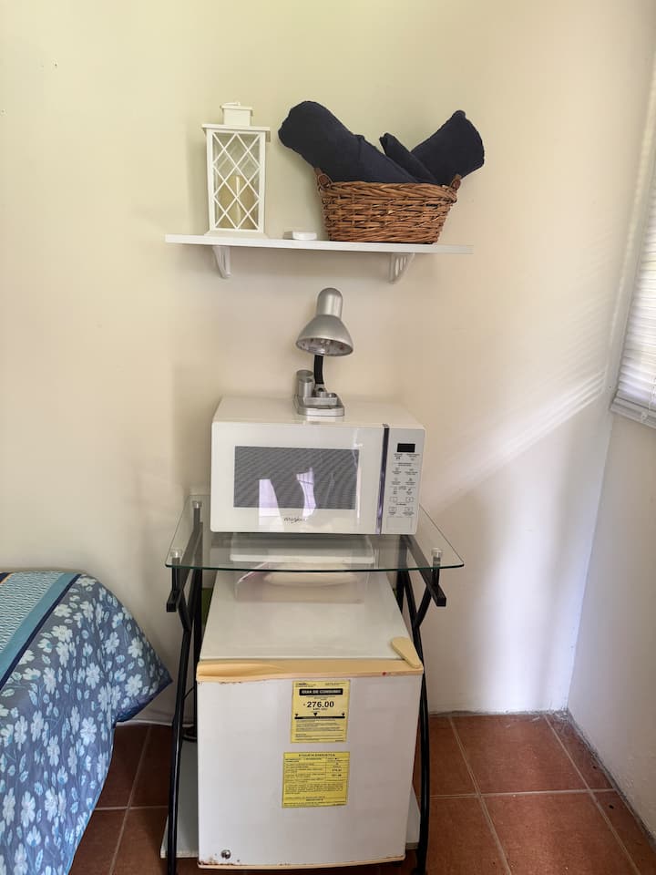 удобно и светло, опремено со двоен кревет со чаршафи, клима уред, тавански вентилатор, микробранова печка и мал фрижидер. Покрај тоа, на страната има и када за перење за дополнителна удобност.