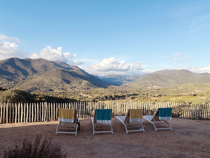 - Сместувања за изнајмување со простор за седење на отворено за одмор во Corse-du-Sud