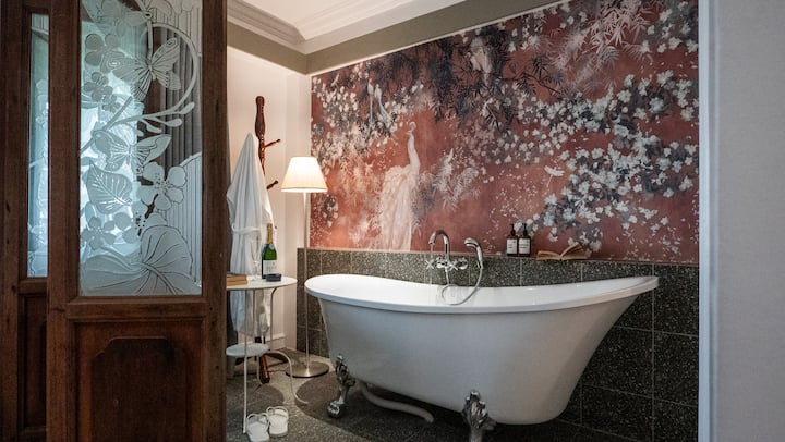 Ако во бањата нема када, на покривот има када со ногарки со одличен поглед и топла и ладна вода. Ова е достапно за сите гости на MiraNamin да го користат. Во кадата има лежалка, а во близина има туш и простор за пресоблекување.