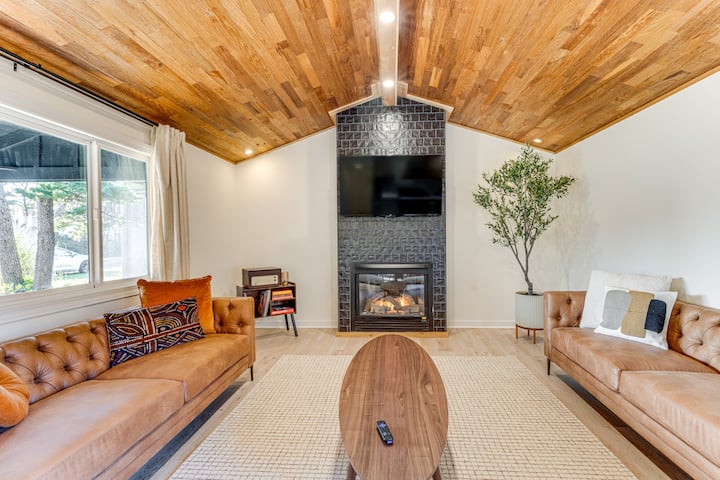 Модерна викендичка во Орегон со хидромасажна када: пешачете до плажа!