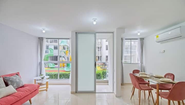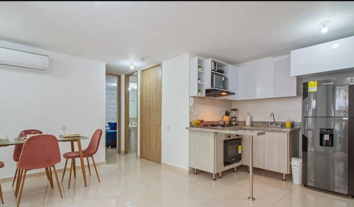 Најдоброто место за угостување во Баранкиља со внимание на англиски, шпански, италијански и португалски јазик. Право на користење на базен и соба за играње во станбениот објект. Одлична локација во Barrio Miramar, со течен сообраќај на јавен превоз и директен пристап до обиколницата и патот до морето, на 10 минути од трговскиот центар Buenavista и трговските центри Miramar 1 и Miramar 2