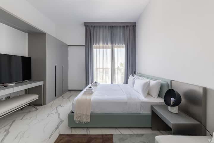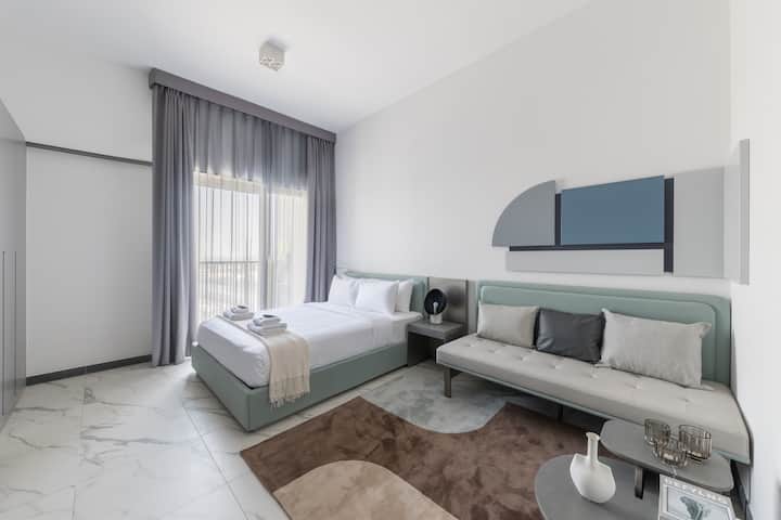 Искусете го модерното живеење во ова стилско студио во МАГ Сити. На само 15 минути возење од Бурџ Калифа и трговскиот центар Дубаи, со метро станицата Business Bay на околу 10-15 минути оддалеченост, ќе уживате во непречено поврзување. Станот е оддалечен 8 минути од патеката Мејдан, 12 минути од засолништето за диви животни Рас Ал Хор и 20 минути од Глобал Вилиџ. Dubai Hills Golf Club и Dubai Hills Mall се на 12 минути возење. Совршено за деловни и рекреативни патници кои бараат удобност и практичност.