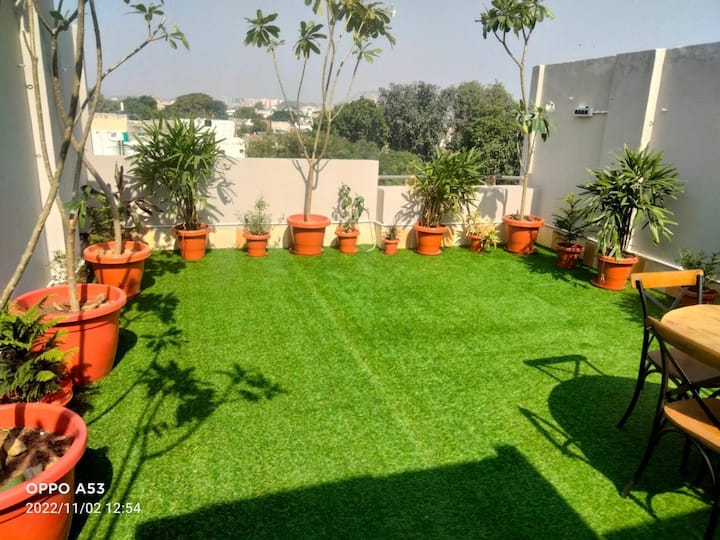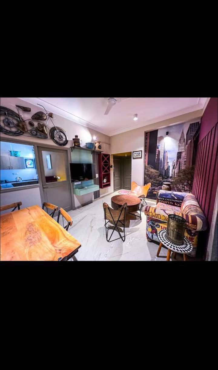 Искусете го динамичниот ноќен живот во 💓Малвија Нагар во ова централно лоцирано место. Во зградата има уметнички 3BHK на 1-ви и 2BHK стан на 2-ри кат,поврзани приватно, што го прави идеално за големи групи, жени и семејства . Се наоѓа на само неколку минути од аеродромот,трговски центри (GT)трговски центри (WTP)клубови,ресторании болници(Fortis). Гостите можат да уживаат во пространи дневни простори, целосно опремени кујни, прекрасна тераса со неверојатен поглед на градот и wifi. Целата зграда за приватен престој.