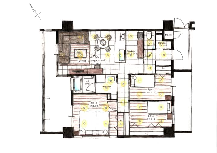 Пространа соба со 3 спални соби поглед кон♪ океанот Погледот од♪ бањата е исто така најдобар!Ломбаке Окинава