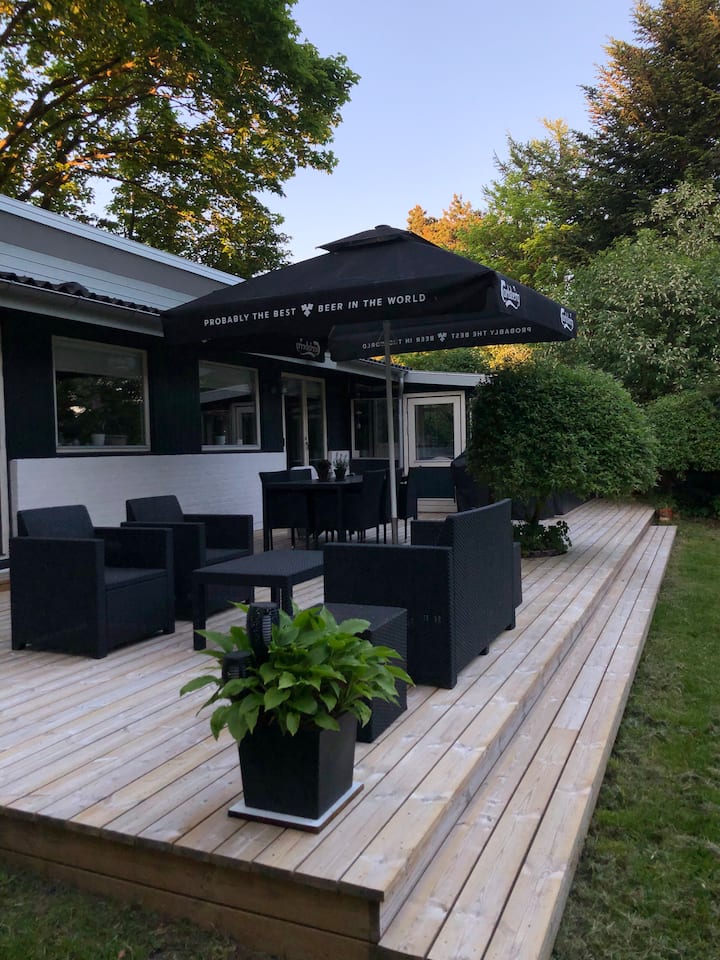 - Сместувања за изнајмување со простор за седење на отворено за одмор во Данска