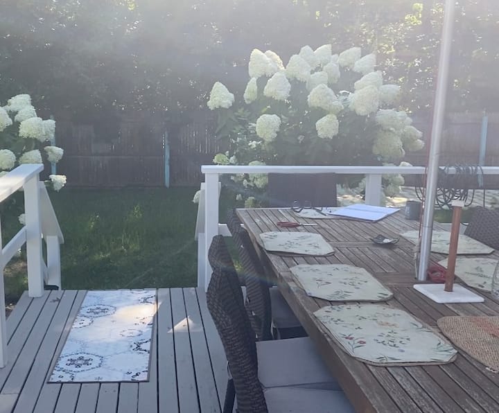 - Сместувања за изнајмување со простор за седење на отворено за одмор во Хамптонс