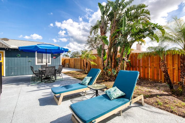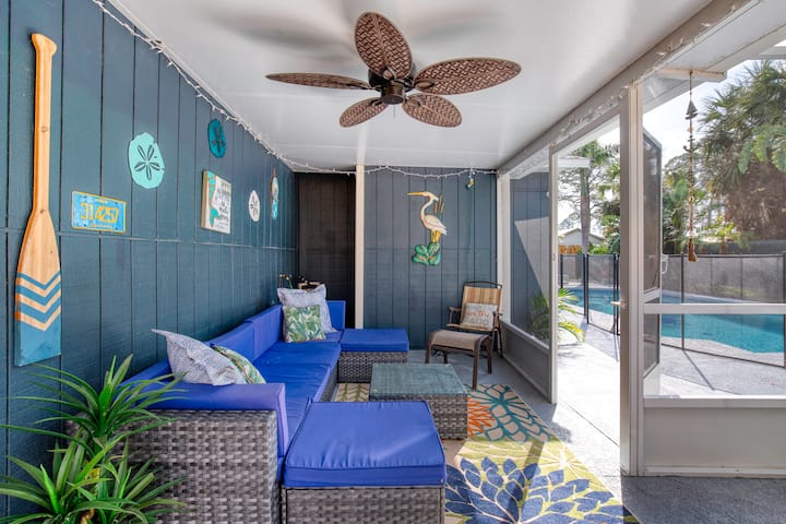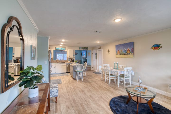 Избегајте во ова стилско крајбрежно одморалиште на само 15 минути од плажата! Овој шармантен дом има 6 лица и има приватен базен и хидромасажна када - совршени за опуштање по денот поминат на сонце. Уживајте во ветровит крајбрежен декор, удобни простори за живеење и целосно опремена кујна која прави да се чувствувате како дома. Без разлика дали уживате во базенот или ги истражувате атракциите во близина, ова е идеално место за забавен и релаксирачки одмор.