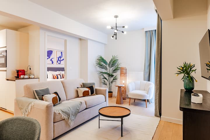 Сместен во живеалиште со дополнителни услуги со лифт, овој стилски стан нуди удобен престој во европскиот кварт во Брисел, во близина на клучни институции и атракции.
