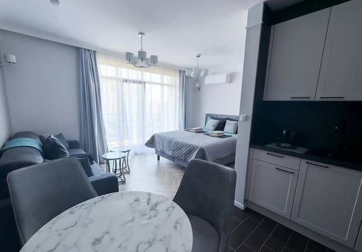 Луксузен стан со базен на кратко пешачење од плажата