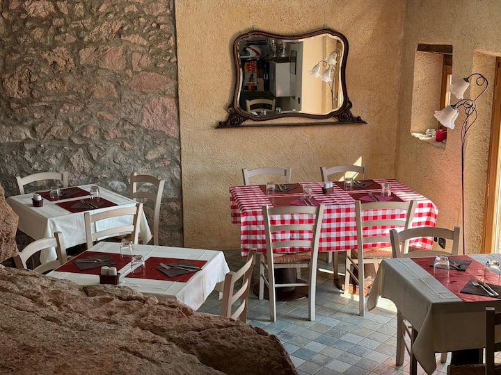 Во нашето извонредно сместување, секое ќоше е осмислено да ви понуди незаборавно искуство во контакт со природата. Нашите заеднички простори се дизајнирани да обезбедат релаксација и дружељубивост во уникатна средина. Започнете го денот во нашиот волшебен простор за појадок, лоциран во шармантна визба врежана во карпата. Овде, опкружени со топла и пријатна атмосфера, може да уживате во вашето кафе или чај, придружени со вкусни пакувани слатки, а истовремено да бидете опкружени со спокојството на околната природа.