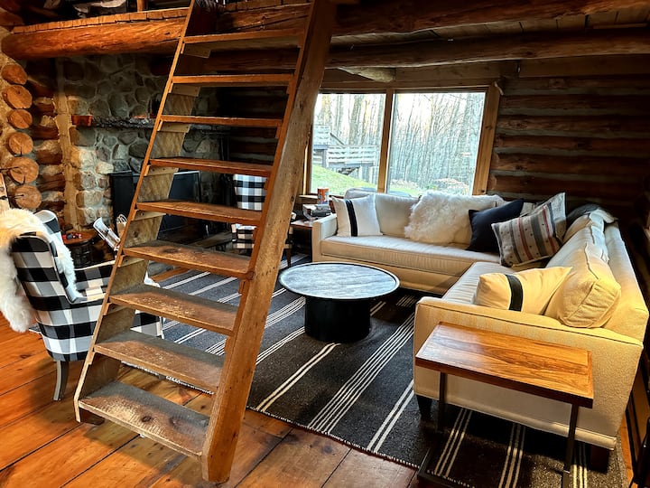 Цело сместување (дрвена колиба) во Hubbardsville, Њујорк, Соединети Американски Држави