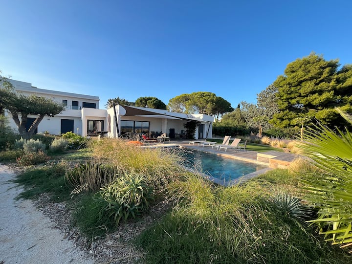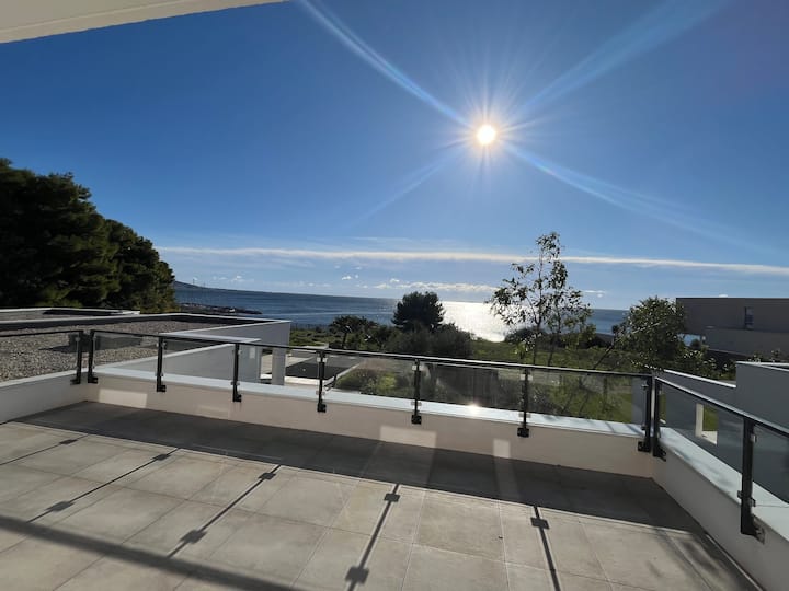 Возвишена вила за 8 лица со поглед на море, базен, плажа на 5 минути пешачење