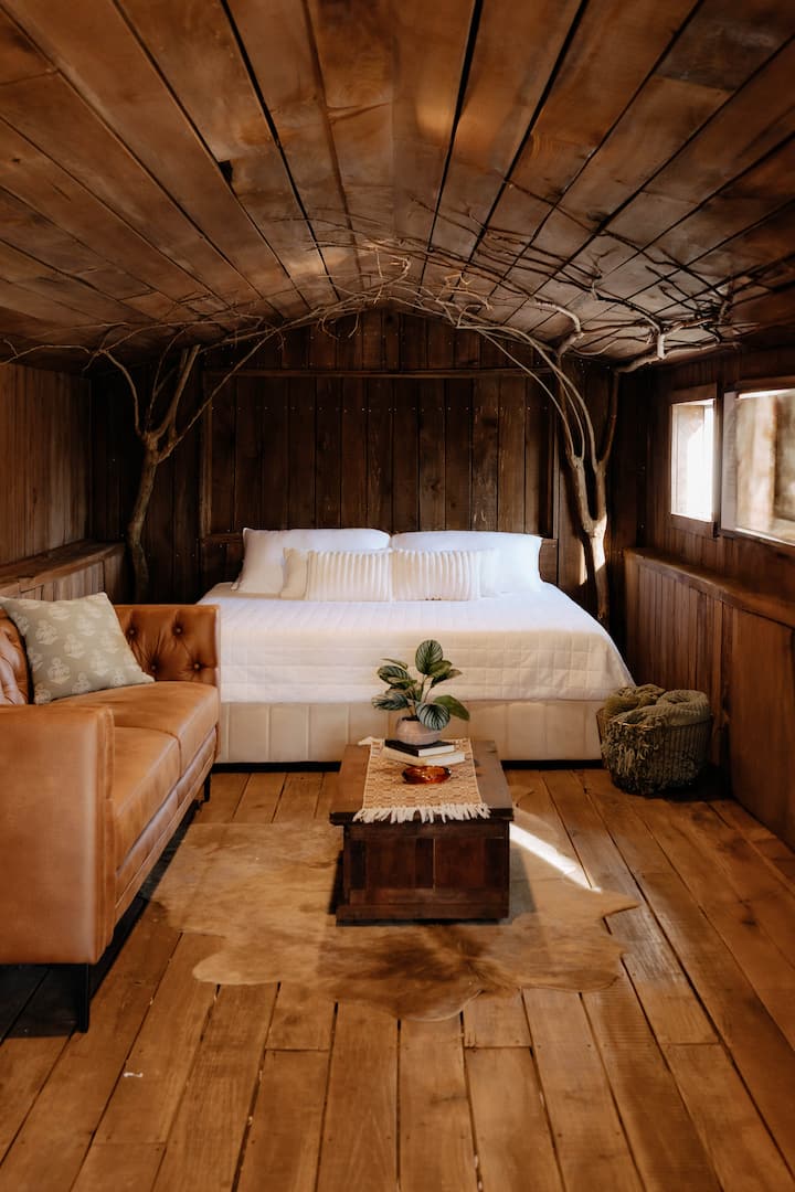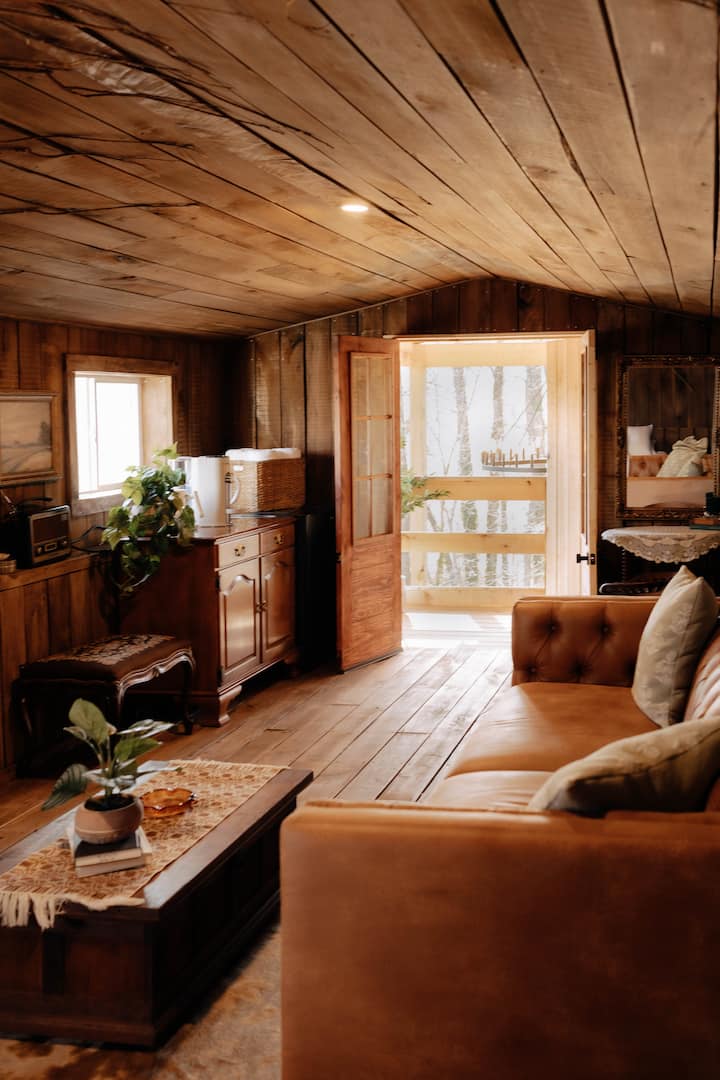 Јас и мојот сопруг изградивме минијатурна куќа на реката од темел и многу сме возбудени што го делиме просторот со вас! Се надеваме дека ќе ви се допадне! Дефинитивно беше труд од љубов и труд од солзи, целото дрво беше од локална мелница две и секое парче беше шмирглано и зашрафено од Тајлер. Се надеваме дека ќе ја почувствувате љубовта што влезе во просторот!