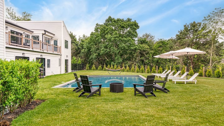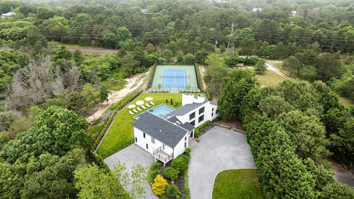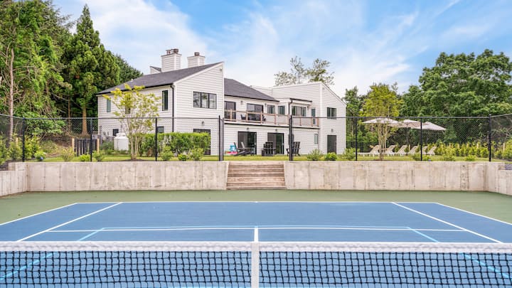 Излезете надвор и претопете се во приватна оаза наменета за релаксација и забава. Загреаниот базен поканува освежителни утрински пливања, додека приватниот тениски терен обезбедува активно бегство. Опуштете се на просторната тераса за сончање или соберете се околу огништето на отворено, каде што столовите во Адирондак ја подготвуваат сцената за незаборавни вечери под ѕвездите. Уживајте во повеќе простори за седење идеални за коктели и разговор, како и во доволно бесплатен паркинг, овој дом обезбедува непречен спој на удобност и софистицираност.