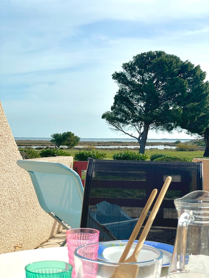 Приватно пристаниште за да се восхитувате на зајдисонцето над морското езеро и канигу или за да го закотвите бродот и директно да пристапите до Средоземното Море.