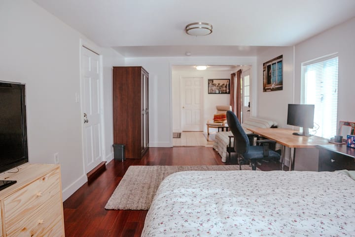 Ние сме безгрижен пар кој живее во областа на заливот повеќе од една деценија. Обожаваме да се грижиме за нашата домашна градина со растенија, да готвиме со локални сезонски производи и да се занимаваме со домашни проекти. Во слободното време, уживаме да ги истражуваме локалните паркови и да се опуштаме дома. Нашиот простор е тивко место за одмор со удобна дневна соба и мирна градина, совршено за опуштање. Ви требаат совети? Со задоволство ги споделуваме локалните места. Во спротивно, уживајте во целосна приватност.