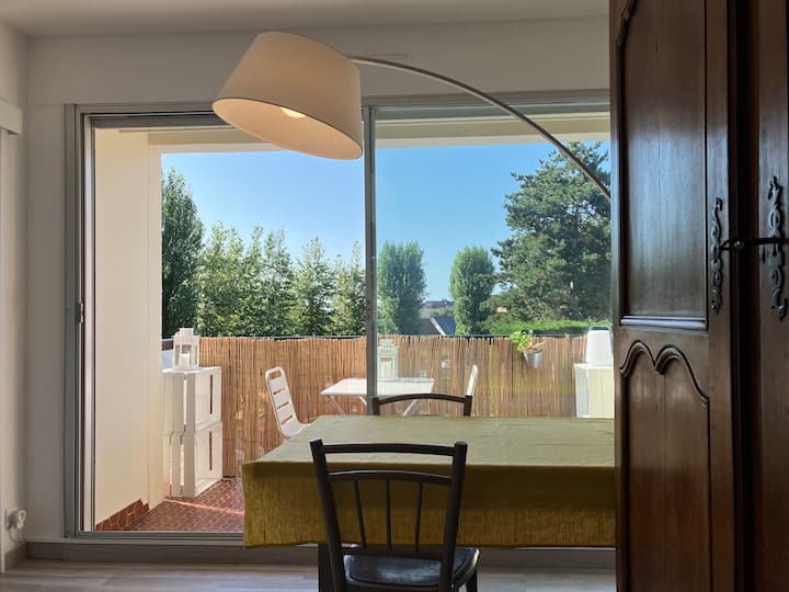 - Сместувања за изнајмување со простор за седење на отворено за одмор во Calvados