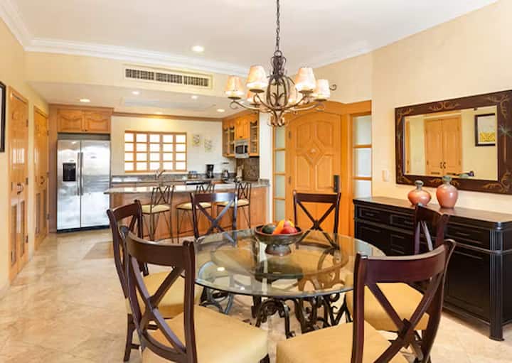 Побегнете во луксузот на вилата La Estancia во Ривиера Најарит! Оваа елегантна вила со 2 спални соби нуди просторен балкон, луксузни удобности и целосно опремена кујна. Уживајте во удобни кревети, базени во ресортски стил и пристап до спа центар од светска класа, фитнес центар и вечерање покрај плажа. Совршено за семејства или парови кои бараат релаксација и авантура. Доживејте ја удобноста, стилот и убавината на мексиканскиот пацифички брег во ова прекрасно прибежиште!