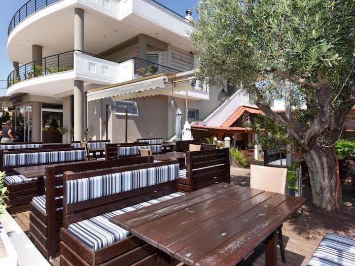 - Сместувања за изнајмување со простор за седење на отворено за одмор во Халкидик