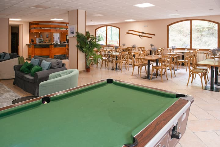 Сега имаме многу различни видови станови, за големи семејства или група пријатели, како и за мали семејства и парови. Имаме деноноќна рецепција за да може да се пријавите во секое време од 16 часот. Исто така, ќе ни биде мило да ви помогнеме со туристички информации, скијачка карта и изнајмување опрема за скијање и сѐ што може да ви биде потребно за време на престојот.
