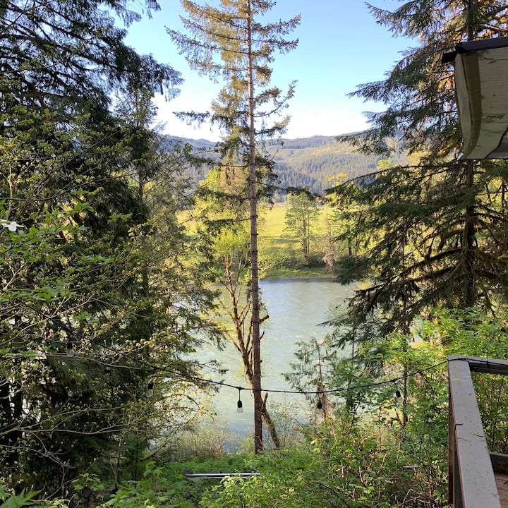 Дрвена колиба Alder Creek - неверојатен поглед кон реката, хидромасажна када