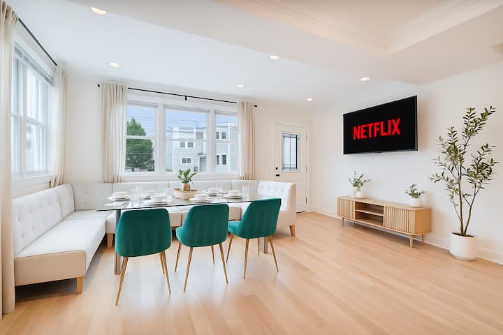Опуштете се во современа удобност со многу простор за целата група и истражете го градот со леснотија од нашата централна локација — на само неколку чекори од најдобро оценети ресторани, шопинг и динамичен ноќен живот.