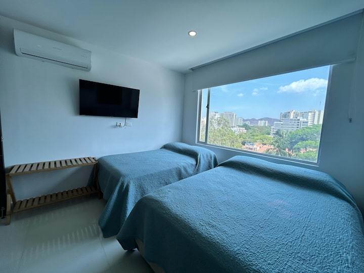 Станот се наоѓа на плажата Едифисио Тајрона која се наоѓа на 2 блока од морето, а плажите се оние на Бело Хоризонте, имаме надворешен базен, простор за игри и сала за вежбање.