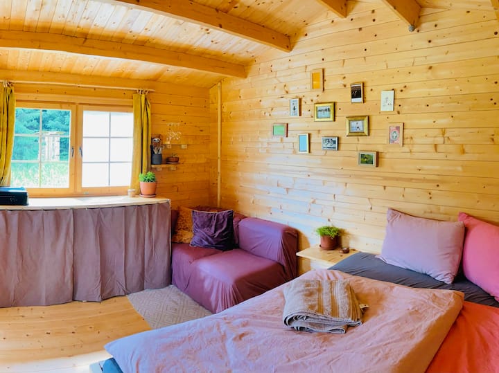 Удобна дрвена колиба во природа совршена за опуштање