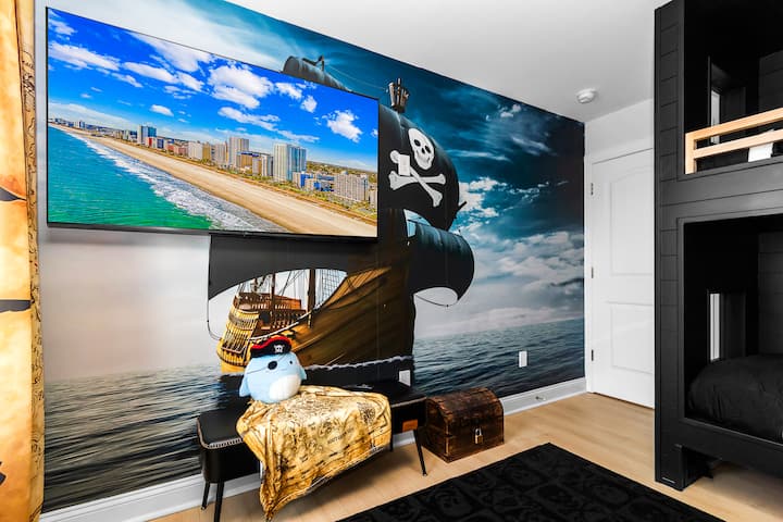 Нашето семејство негува извонредни доживувања за одмор. Инспирирана од ова, SeaBreeze Cottage има соба на тема аквариум со LED светилки, создавајќи подводна авантура. Тропскиот амбиент во дневната соба, забавната фотографија од стол за спасување и гаражата полна со активности на плажа придонесуваат за ова извонредно искуство. Се радуваме што ќе создадете трајни сеќавања во нашиот дом. Споделете ги вашите моменти на социјалните мрежи за да станете дел од нашата приказна.