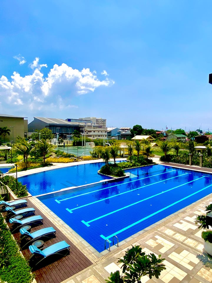 2BR кондоминиум • На 5 минути до трговскиот центар Robinsons • Базен/балкон
