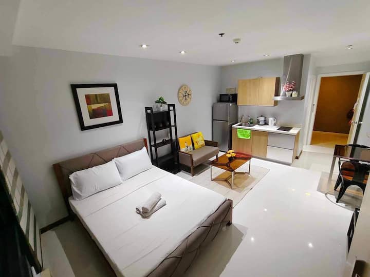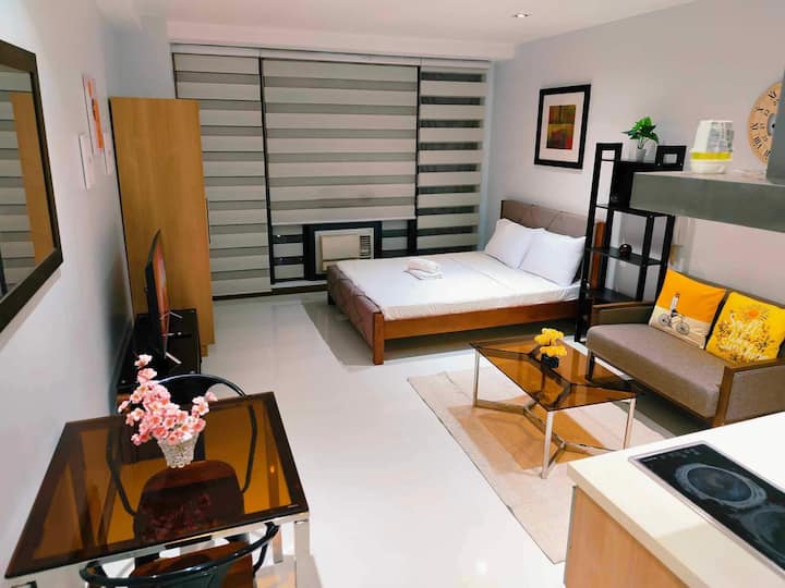 Совршен за самостојни патници, пријатели или мали семејства, нашиот удобен простор има кадифен кревет свртен кон телевизорот и бесплатни удобности од висока класа како базен и сала за вежбање. Уживајте во брз Wi-Fi и целосно опремен простор