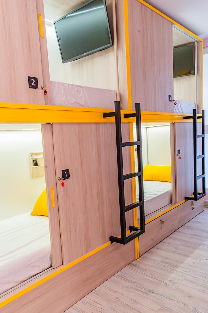 Нашиот хостел има четири соби со различна големина, дизајнирани да ги задоволат потребите на сите наши гости. Секоја соба е опремена со единечни кревети, секој со сопствена брава и приватна фиока за дополнителна безбедност и удобност. Покрај тоа, ќе уживате во забавата во креветот со 32-инчен телевизор.