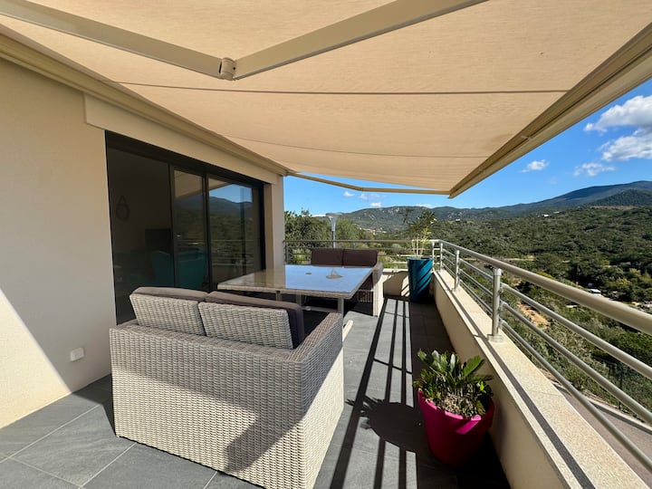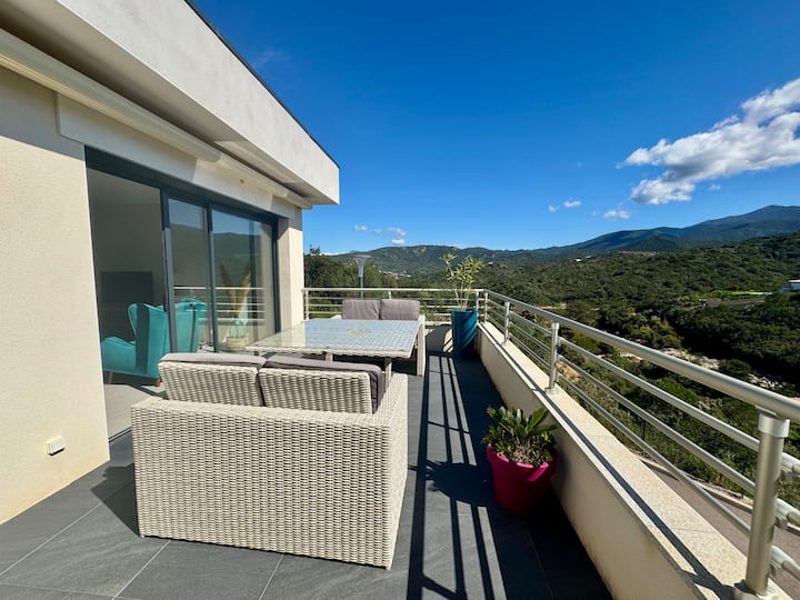 - Сместувања за изнајмување со простор за седење на отворено за одмор во Corse-du-Sud