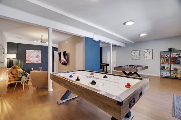 Спуштете се долу за забавна вечер во игротеката, наменета за забава и релаксација. Предизвикајте ги пријателите или семејството на жив натпревар на масата за фудбалска топка или истражете ја обемната колекција на игри на табла за некое пријателско натпреварување. Ако претпочитаните подесувања за филм или телевизор се разликуваат, не грижете се. Во овој простор има и дополнителен паметен телевизор и удобни седишта, обезбедувајќи совршено место за опуштање и уживање во сопствената забава.