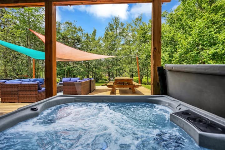 Бегајте во ова мирно место за одмор покрај езеро, совршено за семејства и групи. Уживајте во директен пристап до езеро со кајаци, хидромасажна када, лежалки и огниште за вечери осветлени со ѕвезди. Надворешната трпезариска тераса со скара го подготвува местото за оброци покрај езеро. Внатре, опуштете се во два просторни дневни простора или во игротеката со маса за билјард, хокеј на воздух и фудбалска топка. Без разлика дали барате авантури на отворено или мирно прибежиште, ова место за одмор покрај езеро има сѐ што ви е потребно за незаборавен престој.