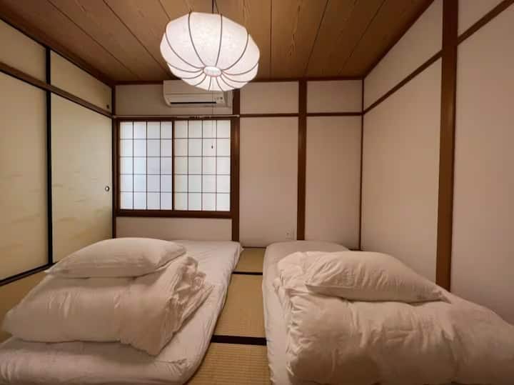 Не грижете се за 🛏️ 8: четири спални соби со татами + двојна бања + приватна бања, подно греење/клима уред/машина за перење/сушење алишта, паметен дом + проекција на Netflix.